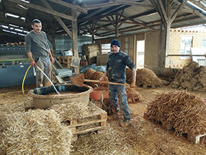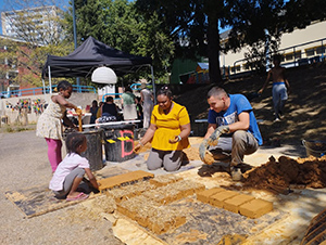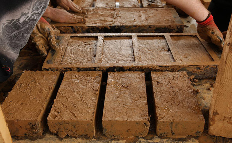 « Nous récupérons de la terre dans les alentours, issue de travaux de terrassement notamment. Elle est ensuite mélangée à la main à de l’eau et de la paille, moulée dans des cadres en bois et séchée à l’air libre », développe Laura Dumoulin. Ces adobes sont ensuite vendus à des professionnels locaux du bâtiment – souvent des maçons spécialisés – et des particuliers, pour des constructions ou des rénovations. Terre propose aussi d’autres produits, tels la terre tamisée – qui sert à faire des enduits – ou des mélanges pour des ouvrages en terre (torchis, bauge…). Depuis le début de l’activité, en mai 2020, l’association a réemployé 600 tonnes de terre et produit ainsi 280 mètres cubes de matériaux. Elle fabrique aujourd’hui environ 35 000 briques par an. Et pour cela, des chantiers participatifs sont régulièrement proposés. Ils réunissent un panel divers d’intéressés au sujet : habitants, personnes accompagnées par un Centre d’accueil pour demandeurs d’asile, adolescents avec Unis-Cité, étudiants…