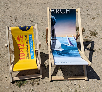 « Les 100 transats ont été confectionnés dans un délai très rapide, en à peine deux mois ! Nous sommes ravis de cette collaboration. Ils nous ont été livrés avec trois chariots, de manière à ce qu’on puisse les déplacer de séance en séance », poursuit Mathilde Duchesne. AcSoMur a profité de ce défi pour ensuite décliner des chiliennes en modèle enfant, proposées à la vente aux particuliers. « Ce projet a été un réel challenge pour nous. Il a permis de faire travailler nos salariés ensemble, de mélanger les spécialités – bois, couture, communication… Le timing était très serré, nous étions débordés la semaine précédant la livraison et tout le monde s’est entraidé. Cela a renforcé la cohésion de l’équipe », sourit Damien Lecardonnel.