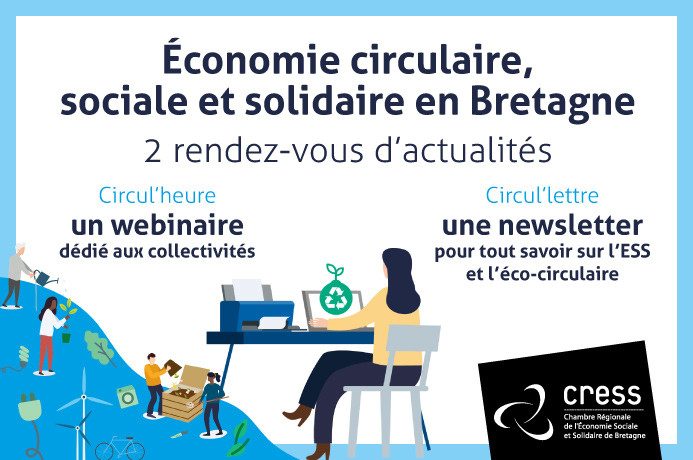 Depuis quelques années, un nombre croissant de collectivités territoriales, et d’intercommunalités en particulier, s’engage dans des projets territoriaux d’économie circulaire. Afin d'impulser et de consolider la place des organisations de l’économie sociale et solidaire dans ces projets de territoire, la Cress Bretagne propose aux collectivités des conseils et des ressources lors d'un échange direct en visio-conférence. Depuis avril 2021, « Circul’heure » est le rendez-vous trimestriel en ligne dédié aux acteurs publics pour apporter des réponses concrètes à leurs questions et favoriser les retours d’expérience.