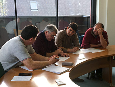 En avril 2023, une réunion de travail entre producteurs sur les coûts de production de la filière. De gauche à droite, Jean-Pierre le Rolland (agriculteur-producteur à Plougras et président de la SCIC, Hervé Guélou (vice-président à l’énergie de Lannion-Trégor Communauté), Benoit Sidaner (agriculteur-producteur à Bourbriac et Philippe Carmes agriculteur-producteur à Louargat). Les agriculteurs adhérents s’engagent à maintenir la ligne de vie des haies, grâce à une coupe raisonnée qui assure la protection de la biodiversité.