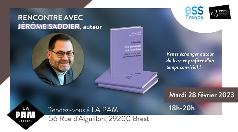 Michel Jézéquel, Président de la Cress Bretagne et Vice-président d’ESS France, vous invite, en coopération avec l'association PimPamPoum, à échanger avec Jérôme Saddier, Président d’ESS France, autour de son livre :