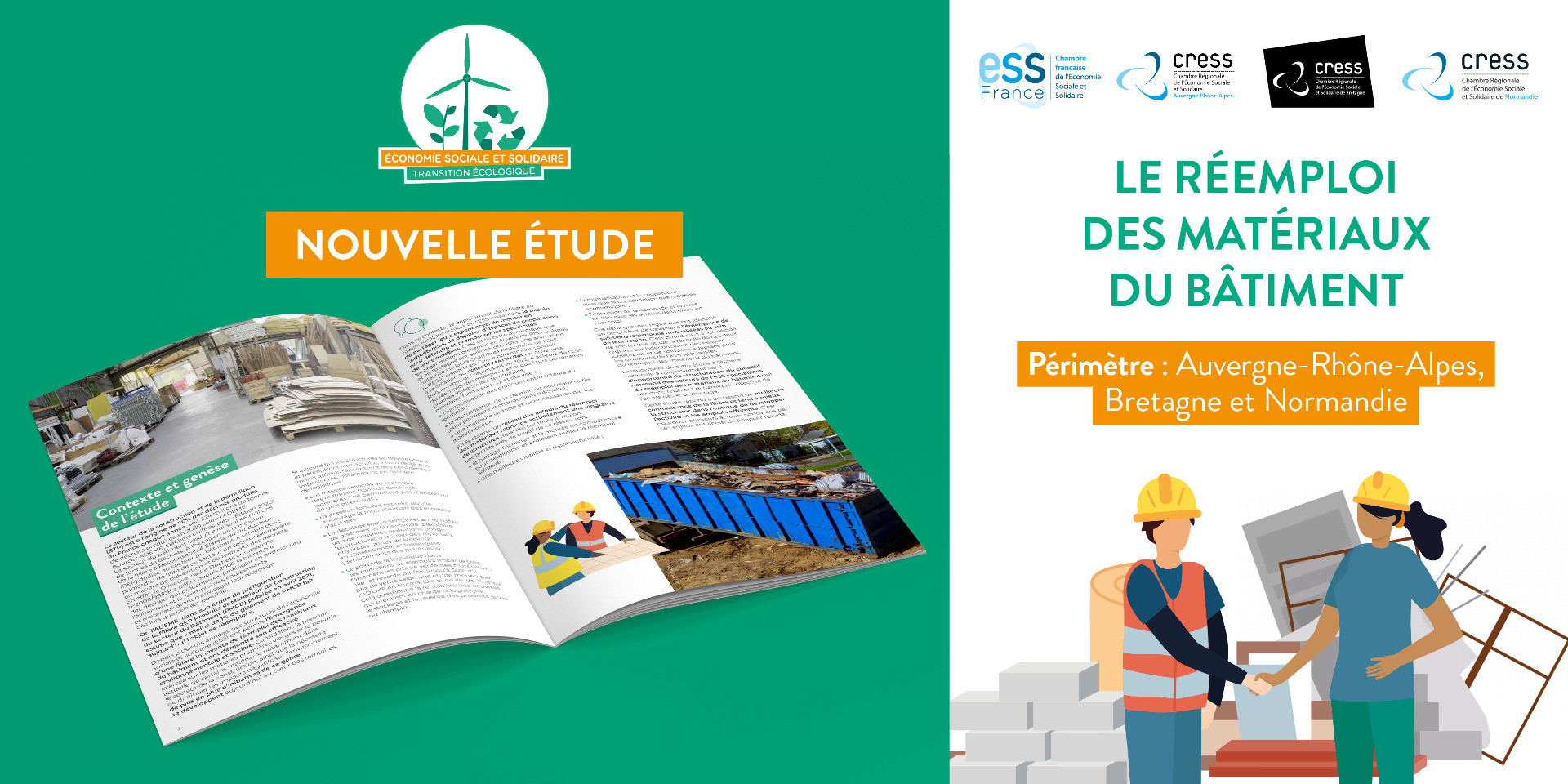 Résultat d’une collaboration entre ESS France, la Cress Bretagne, Cress Auvergne-Rhône-Alpes et la Cress Normandie, cette étude ambitieuse traite du sujet de la mutualisation des schémas logistiques pour soutenir le réemploi des matériaux de construction. Pour rappel, selon l’ADEME, le secteur du BTP émet 224 millions de tonnes de déchets (en 2020), soit 70% des déchets produits en France chaque année. Les enjeux sont conséquents !