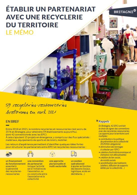 Cette fiche mémo présente quelques idées et conseils pour structurer les partenariats entre EPCI et recycleries-ressourceries en Bretagne.