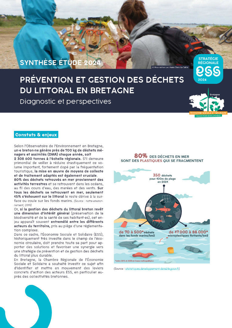 Résultats d'une étude consacrée à la gestion des déchets du littoral en Bretagne produite par la Cress Bretagne et un groupe d'étudiant de l'École des Métiers de l'Environnement de Rennes.