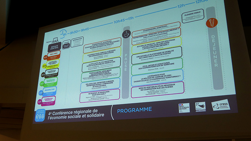 Une plénière conclut la fin de matinée, avec l'intervention de Philippe MAZENC (Secrétaire général pour les affaires régionales auprès du préfet de la région Bretagne), Gaëlle LE STRADIC (Conseillère régionale de Bretagne déléguée à l'Economie Sociale et Solidaire) et Michel JÉZÉQUEL (Président de la Cress Bretagne), afin de souligner la pertinence des réponses de l'ESS face aux défis de notre temps, et de réaffirmer le soutien des pouvoirs publics et la confiance accordée à la coopération entre nos organisations.