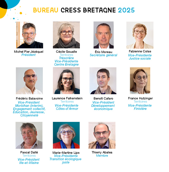- L’ancrage local : le bureau composé de 11 personnes laisse une large place aux territoires. Avec 5 Vice-Présidences territoriales confiées aux représentant.es des 5 groupements ESS, la Cress entend rester connectée aux enjeux de terrain, et avec les pôles et groupements porter la voix de l’ESS sur l’ensemble du territoire breton.