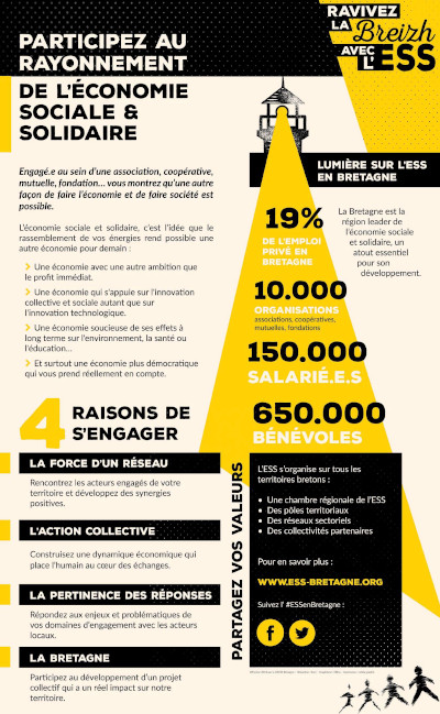 De plus en plus de collectivités développent des politiques publiques de promotion et de soutien à l’Économie sociale et solidaire sur leur territoire, que ce soit la Région Bretagne, avec sa Stratégie Régionale de l’ESS (SRESS), les départements du Finistère et d’Ille-et-Vilaine, les métropoles de Brest et Rennes, ou encore les communautés de communes.