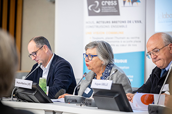 Nous devons l'introduction de la matinée à Christophe GINET, élu à Lorient Agglomération, délégué à l'ESS, Marie-Martine LIPS, vice-présidente de la Cress Bretagne, Hugues SIBILLE, président du Labo de l’ESS et Baptiste ROLLAND, sous-préfet de Lorient.